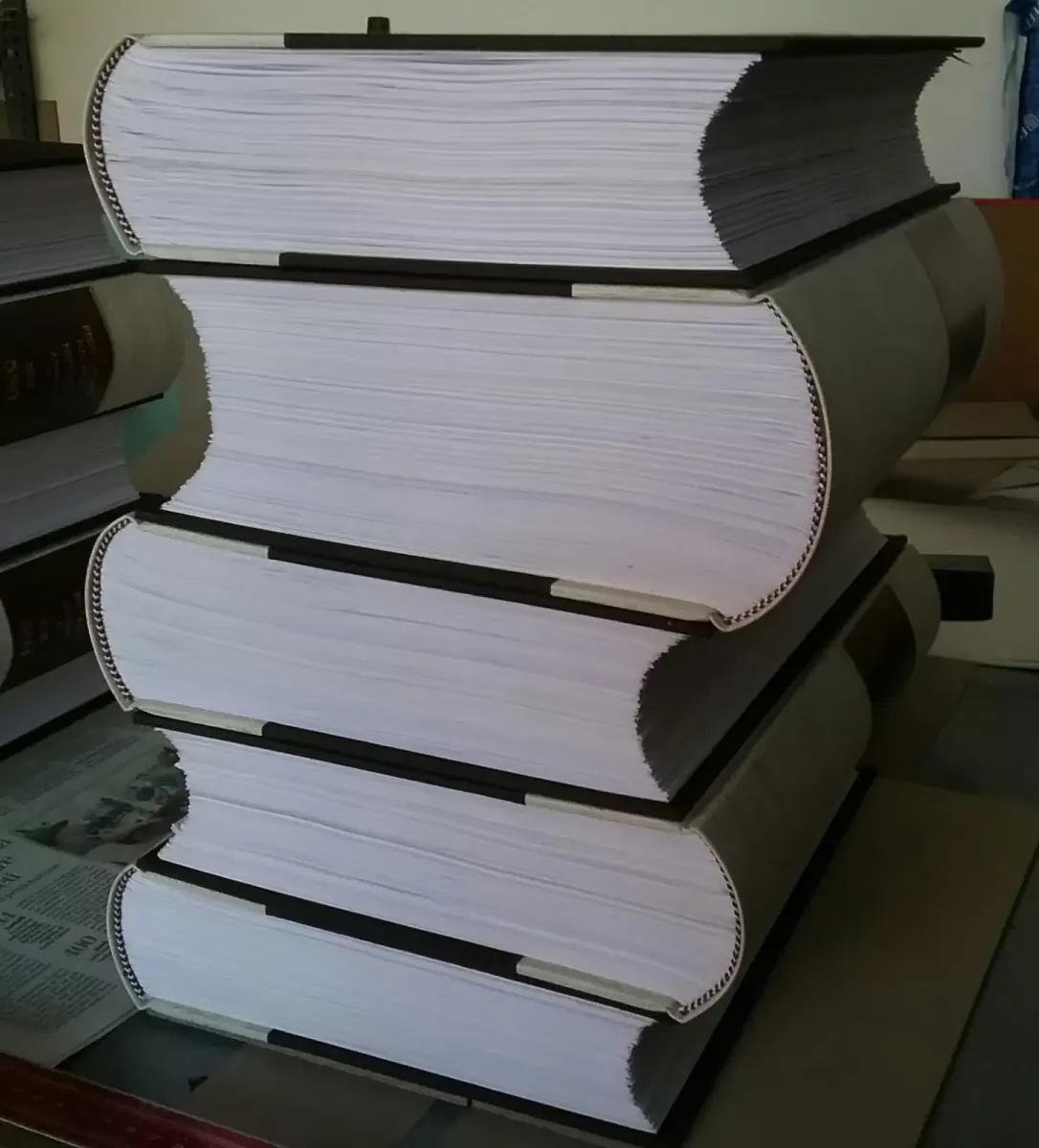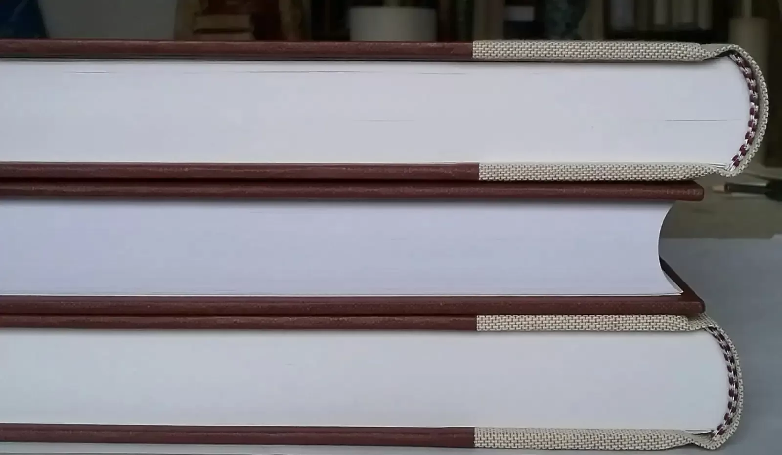 I fascicoli vengono cuciti rigorosamente a mano e su fettuccia con filo refe.